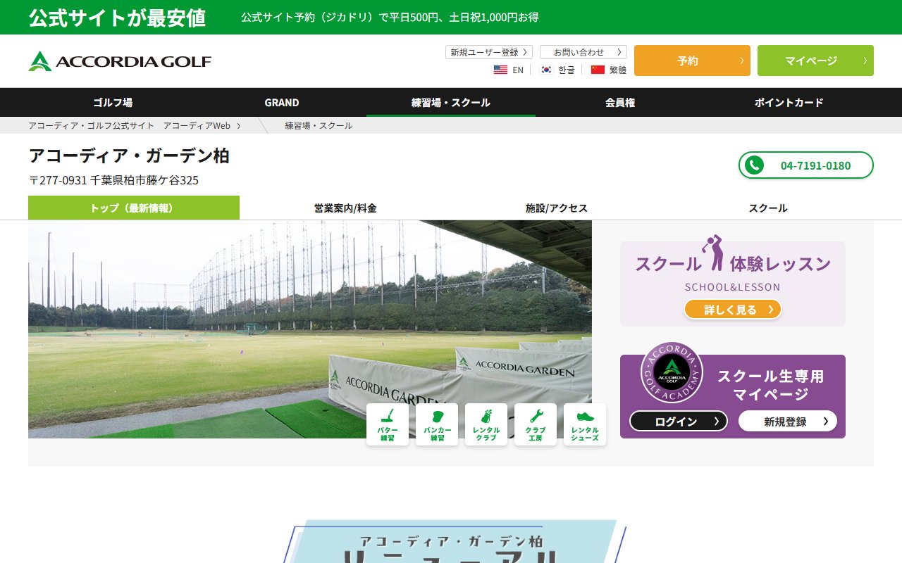 口コミの多くは屋外練習場(打ちっぱなし)としての評価ですが、練習場としての評価は高く「柏で一番の練習場」という声も。スクール関連ではインストラクターとの相性が重要になります。